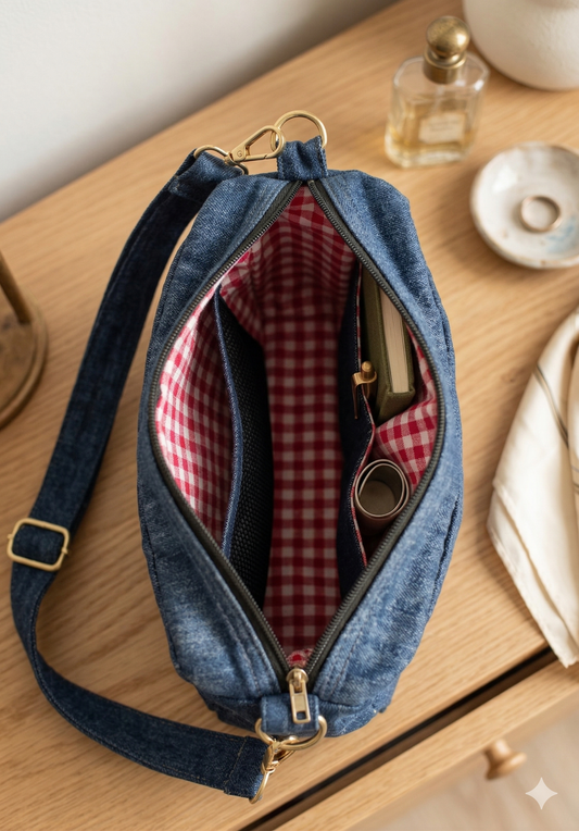 Sweetheart Denim Handmade Zippered Shoulder Bag