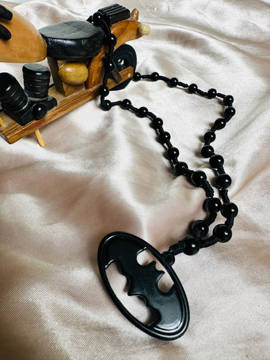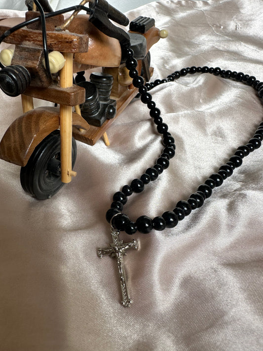 Men Black Glass Pearl Neckpiece with Cross Pendant