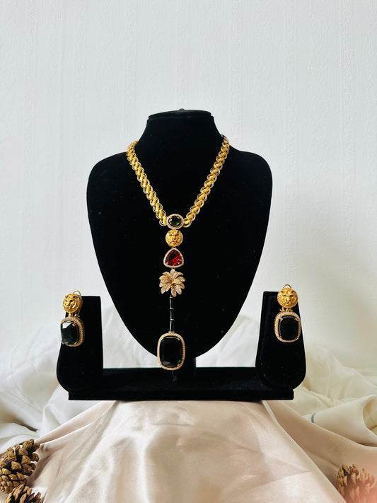 Goddess Lakshmi Red and Green Stone Choker With Large Earrings alloy GoldRegular price £40.99 GBPRegular priceUnit price / per£64.50 GBPSale price £40.99 GBPSold out