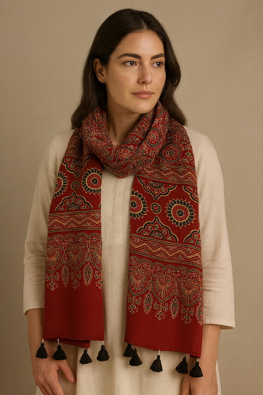 Ajrakh Modal Silk Stole/ Scarf with TasselsRegular price £29.99 GBPRegular priceUnit price / per£37.59 GBPSale price £29.99 GBPSale