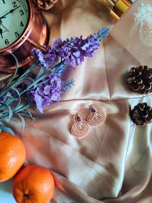 Purple Rose Gold Round Chandbali AD Drop earrings