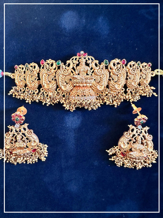 Goddess Lakshmi Red and Green Stone Choker With Large Earrings alloy GoldRegular price £40.99 GBPRegular priceUnit price / per£64.50 GBPSale price £40.99 GBPSold out