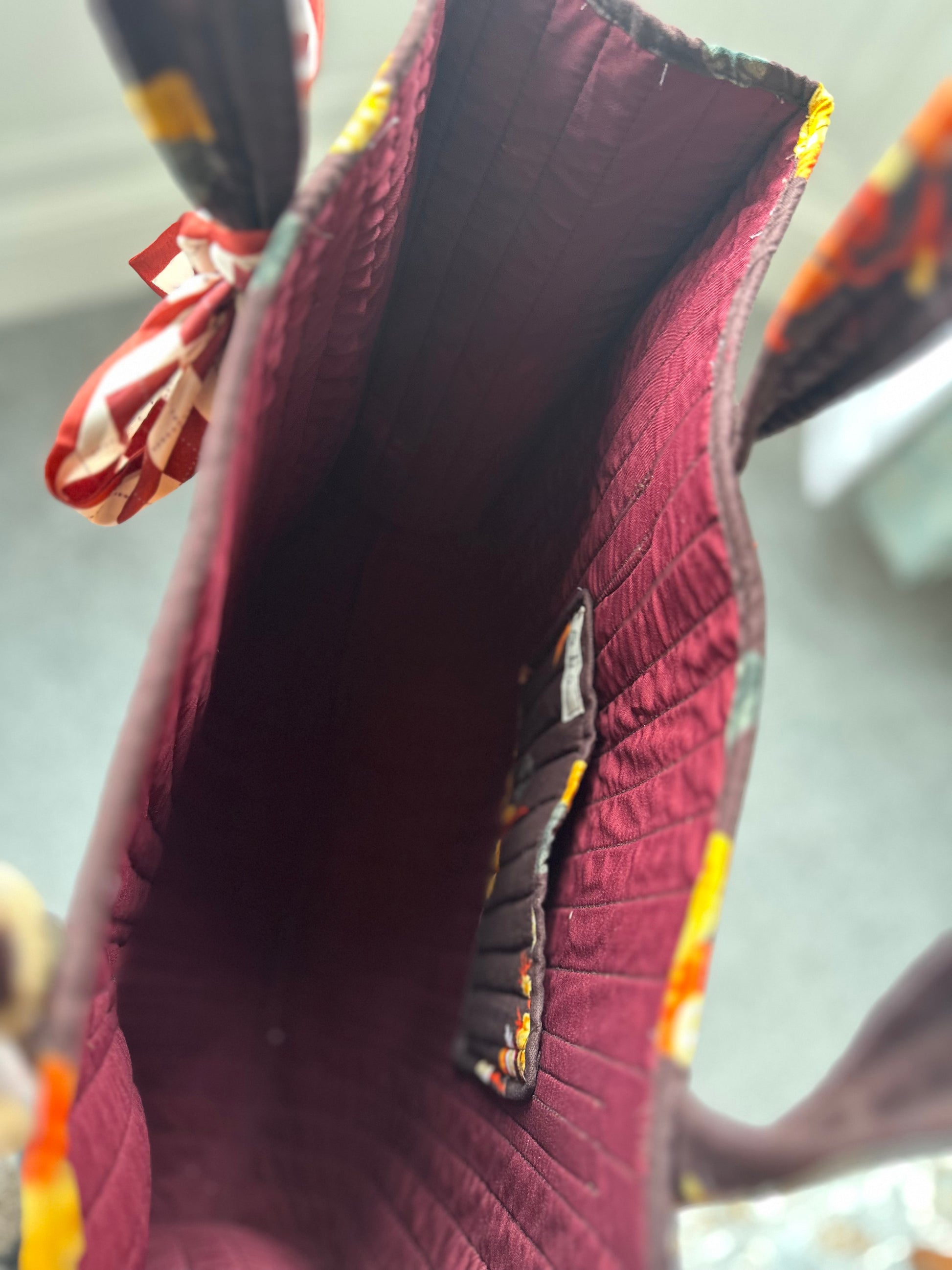 The Cocoa Garden Quilted Handmade Zipper Shoulder Bag is designed for women who need a spacious, stylish, and functional bag for their daily routines. Crafted from high-quality quilted fabric, it features a rich brown floral design that blends elegance with practicality. The detachable scarf bow adds a touch of charm, making it perfect for both work and casual outings.