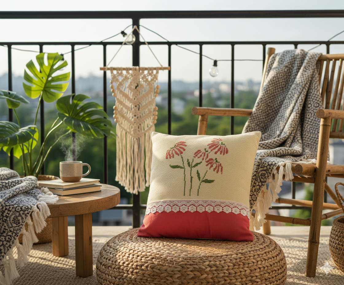 Add a touch of handcrafted old-school charm to your home with the Cross Stitch Cottage Blossoms Handmade Cushion Cover, a beautiful blend of artistry, colour, and craftsmanship. Featuring a delicate cross-stitch floral pattern on soft 100% cotton, this cushion cover brings an elegant, artsy feel to any room. Available in three vibrant shades, Crimson, Purple, and Bright Pink, it pairs effortlessly with plain cushions to create a stunning mix-and-match look that enhances your décor with an oomph factor.