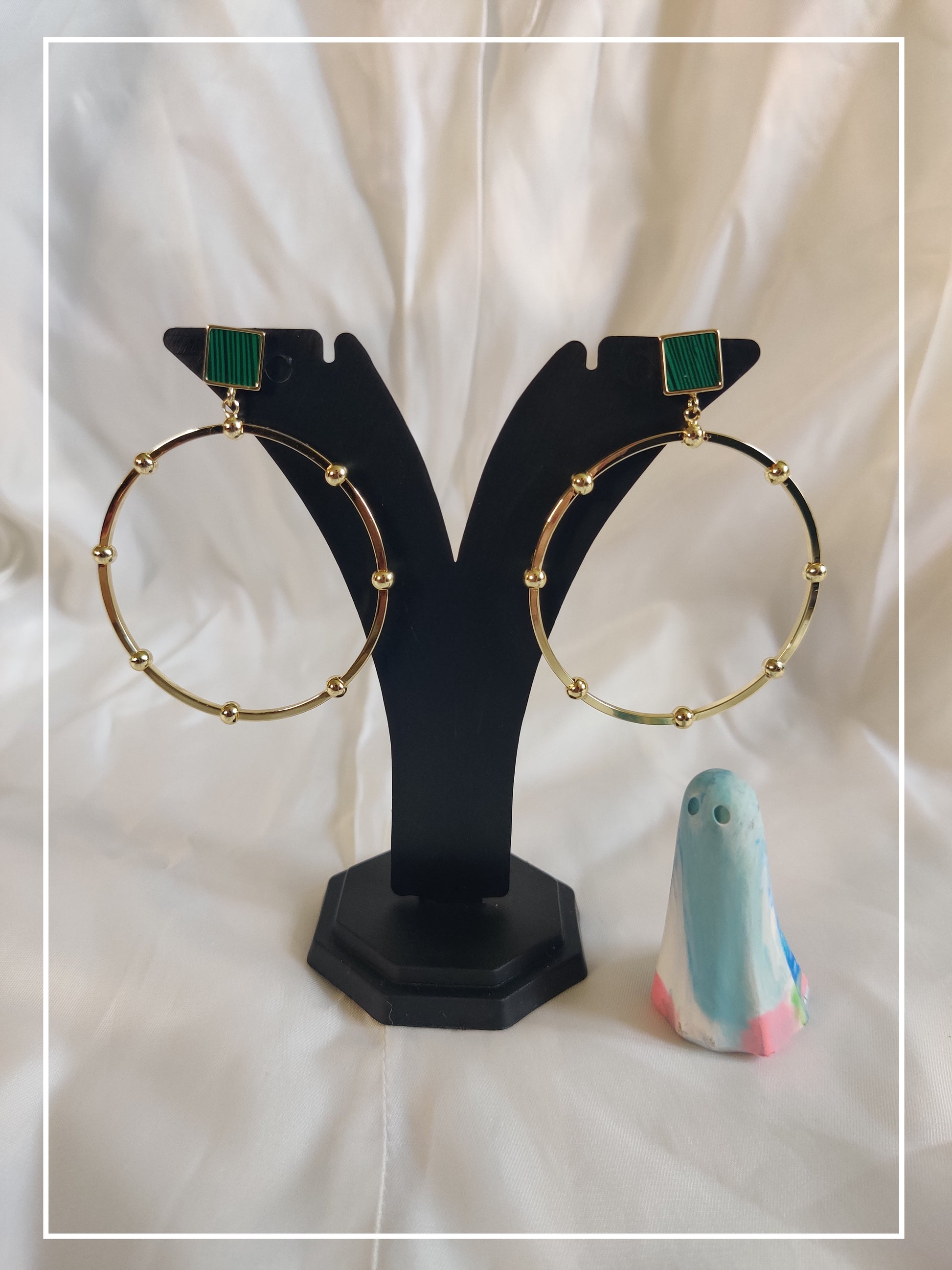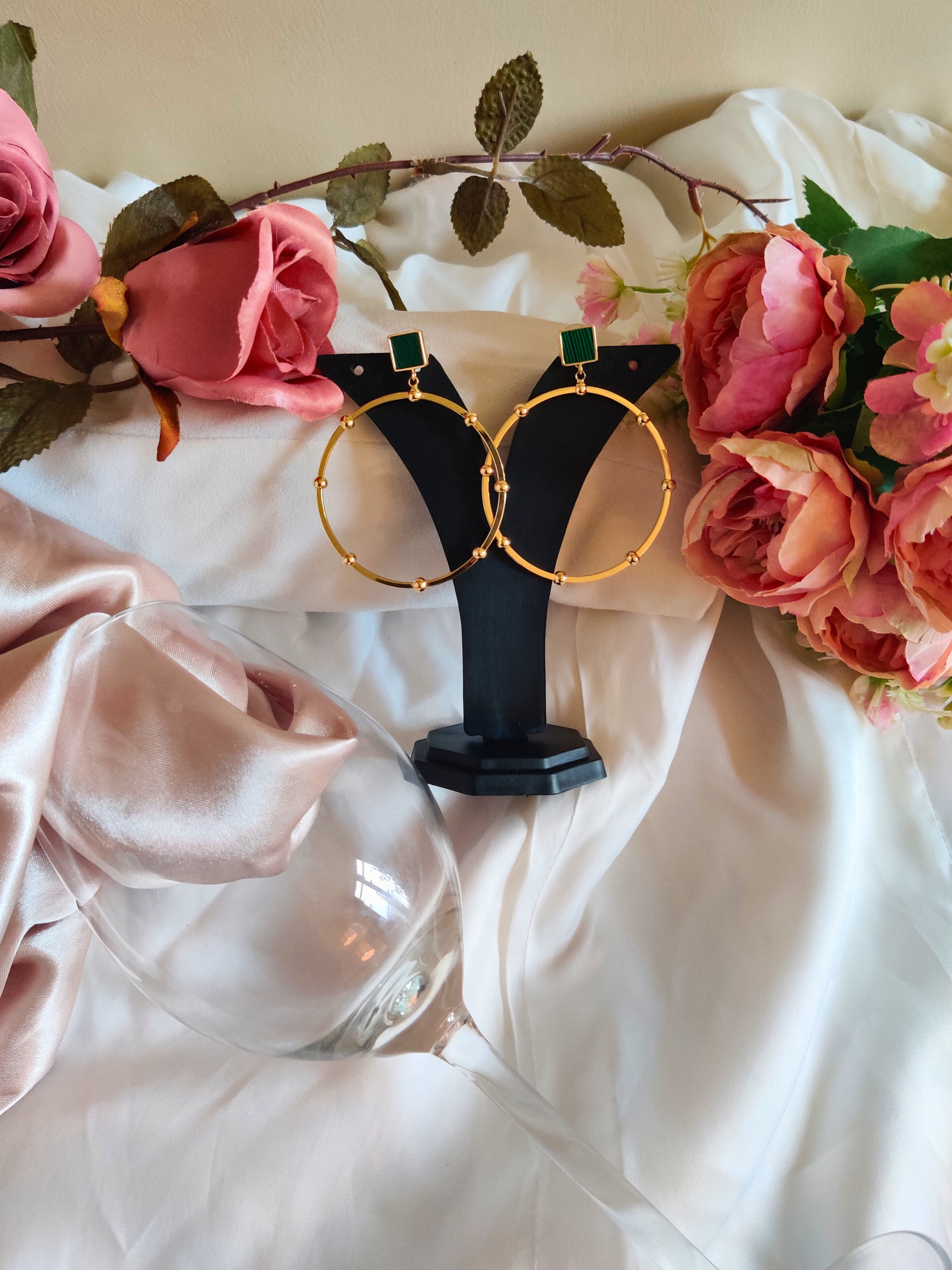 Step into a world of sophistication with our Golden Circular Earrings, crowned with a mesmerising green stud. Each earring features a flawlessly crafted gold circle, boasting a smooth, polished finish that gleams with every turn of your head. At the heart of this golden halo sits a captivating green stud, its deep hue reminiscent of a mystical forest, adding a touch of nature-inspired beauty to your look. Designed with comfort in mind, these earrings are lightweight, ensuring they can be worn all day without discomfort.
