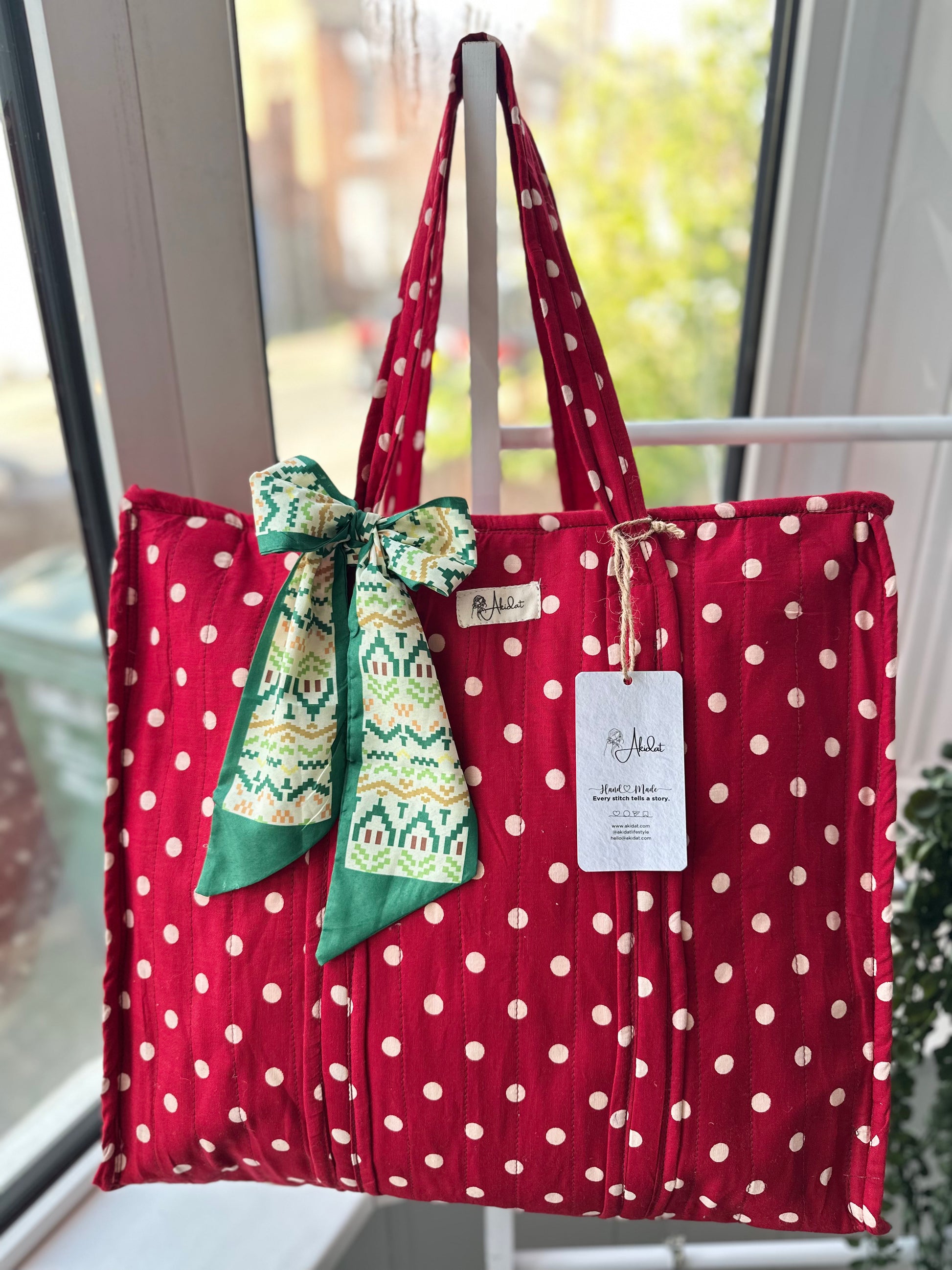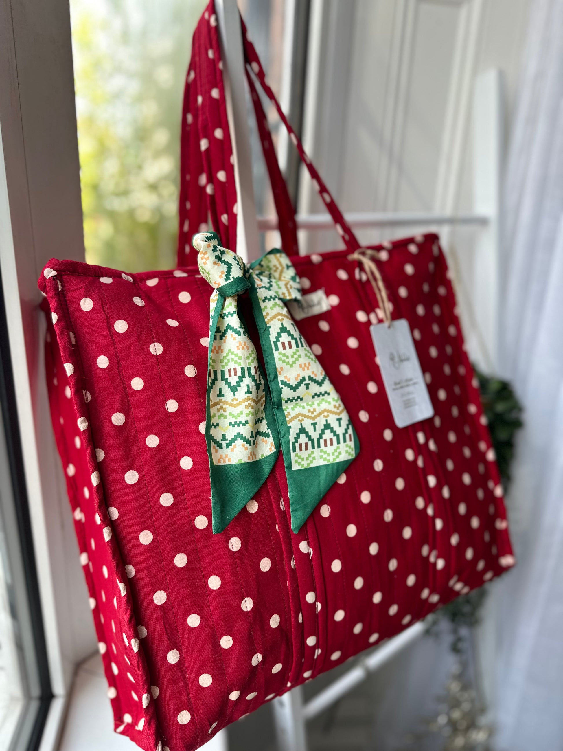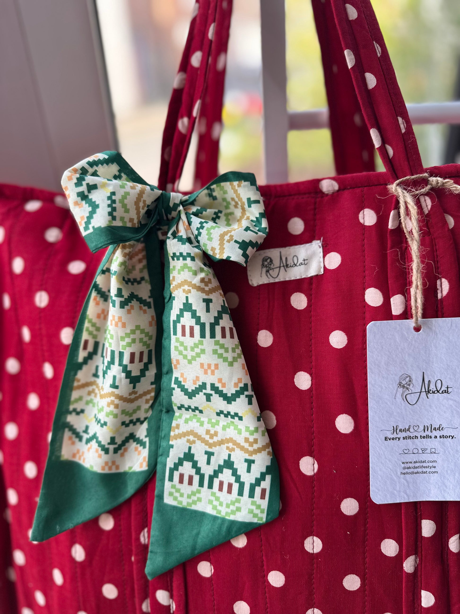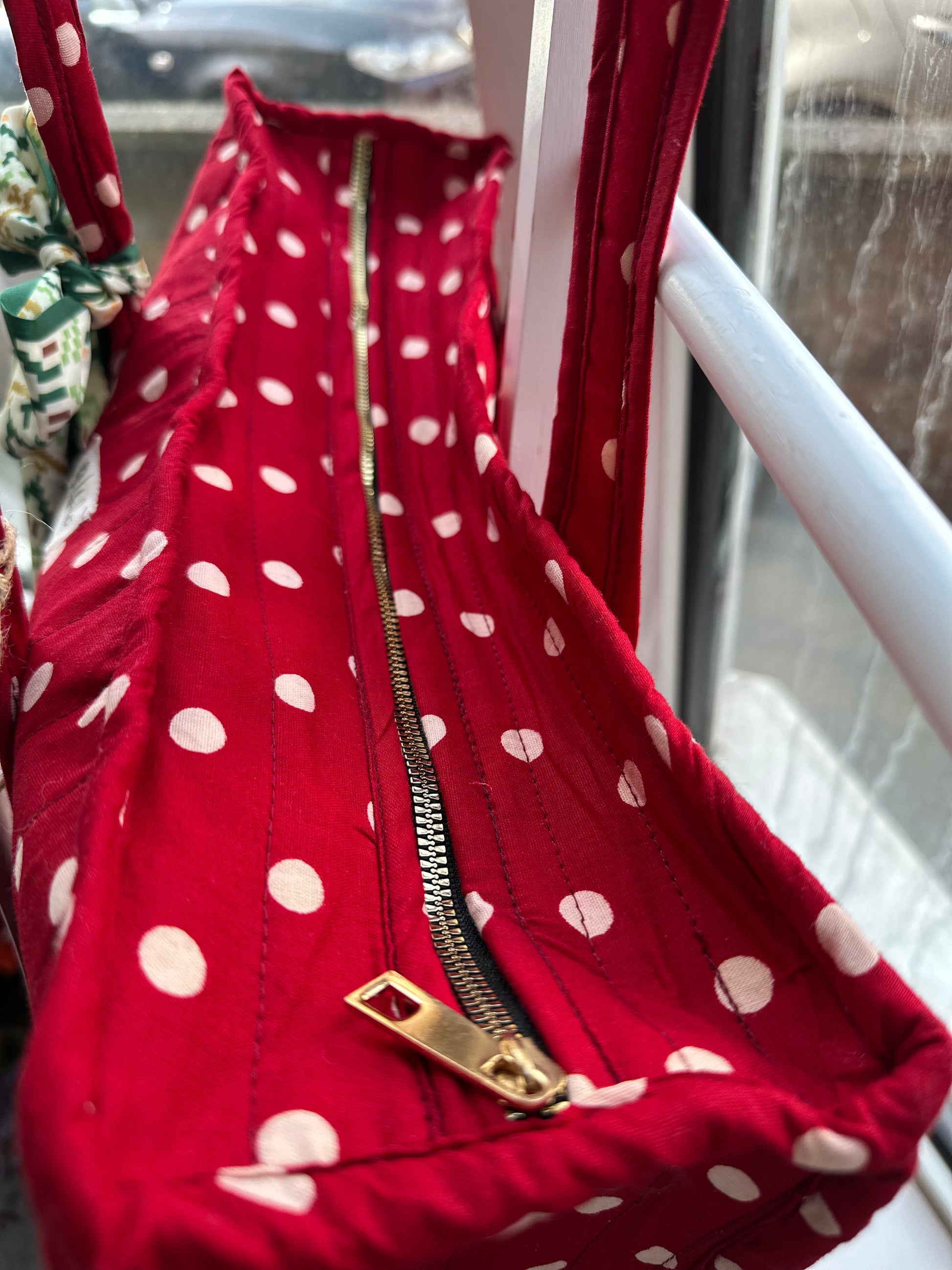 Holly Jolly Polka Dot Handmade Zipper Shoulder Bag with Scarf