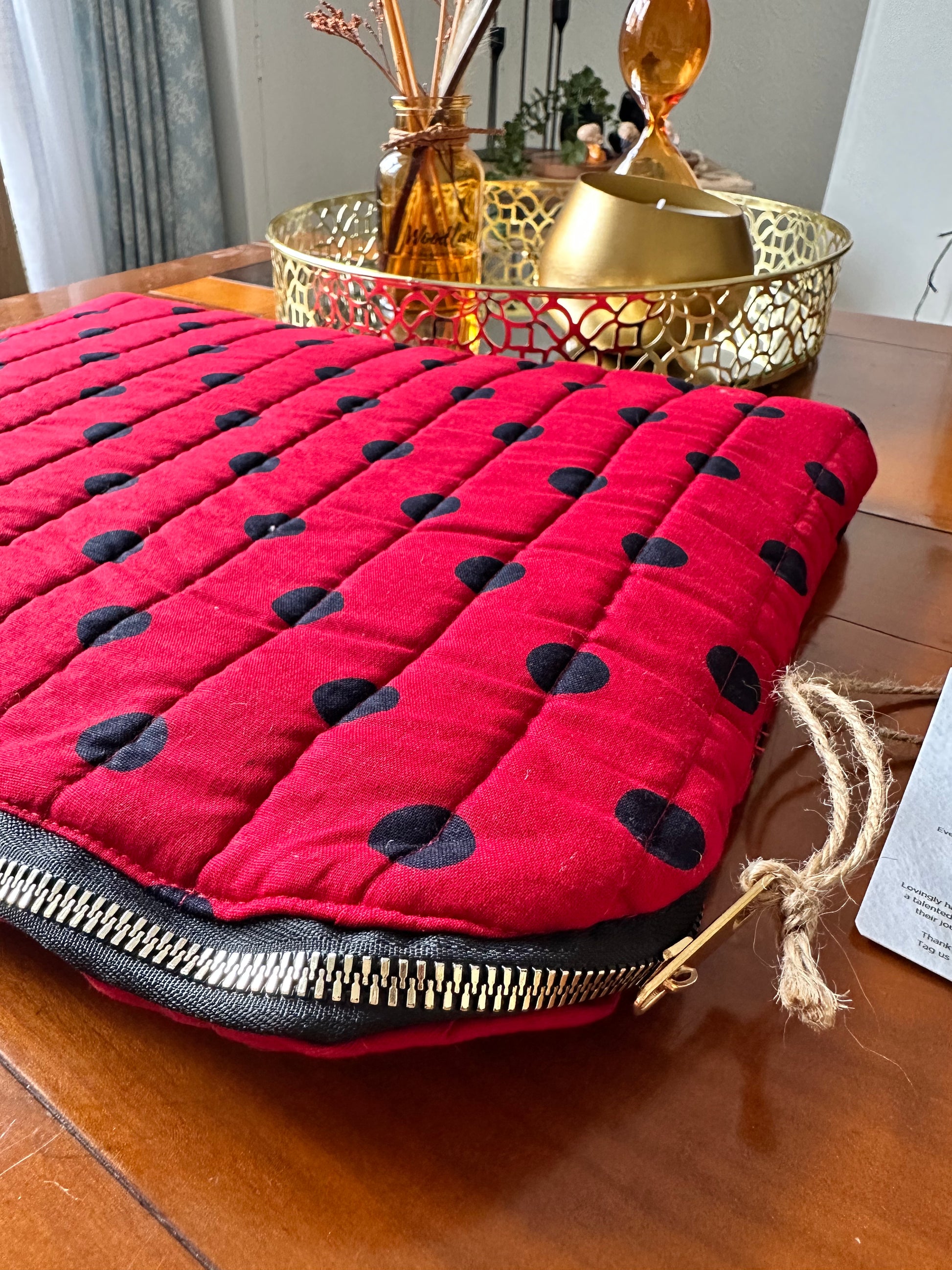 Every Ladybird Polka Dot Laptop Sleeve is handmade by women artisans trained by Akidat, a social enterprise dedicated to empowering women through skill-building, financial independence, and community up-liftment. Your purchase supports real lives and real change.