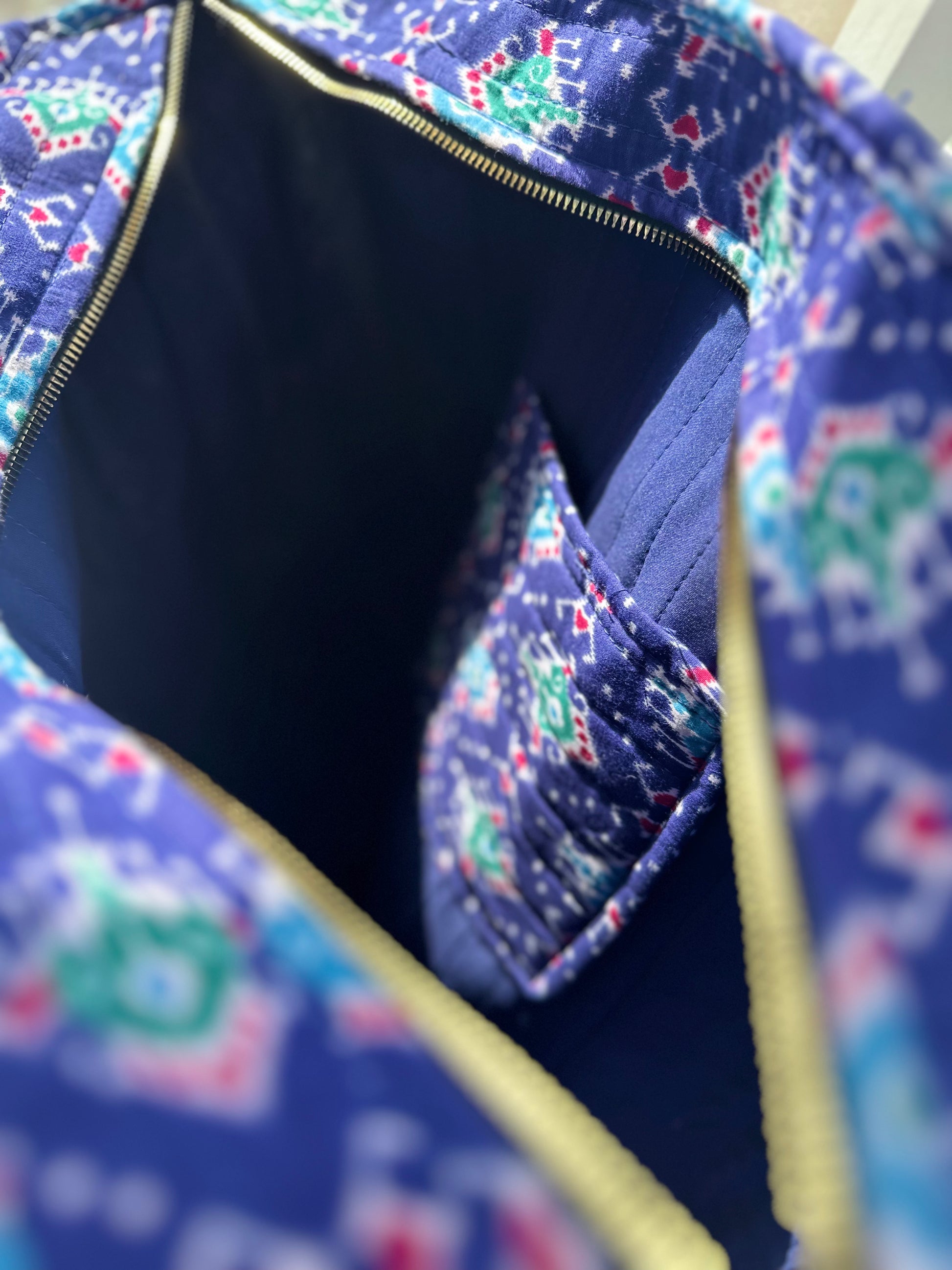 Step into timeless elegance with our Mayur Patola Handmade Zipper Shoulder Bag, a beautiful blend of tradition and utility. Inspired by the regal charm of the Mayur (peacock) and the intricate beauty of Patola patterns, this bag is a vibrant celebration of Indian craftsmanship.