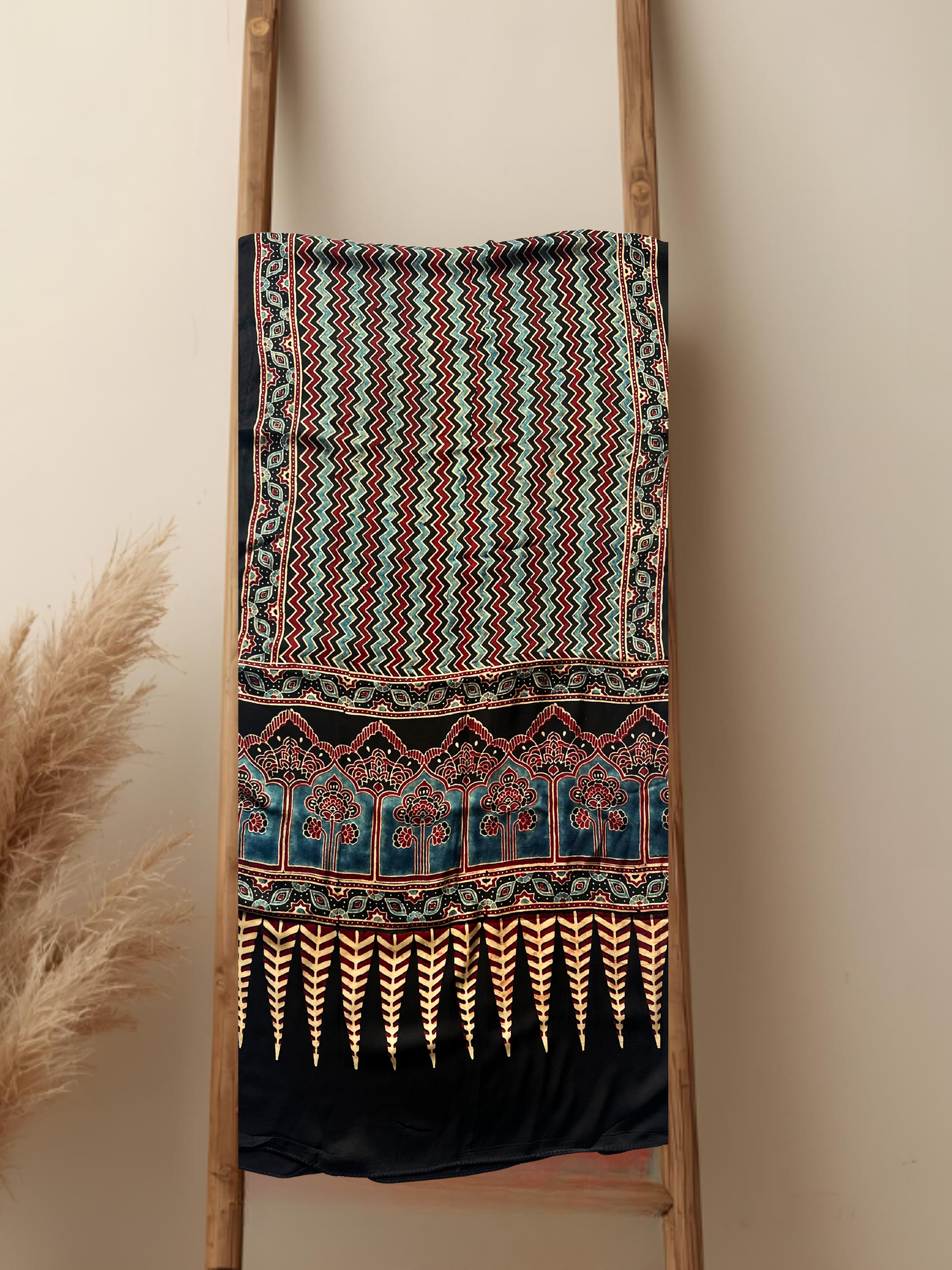 Style: Handcrafted Ajrakh block print on smooth modal silk