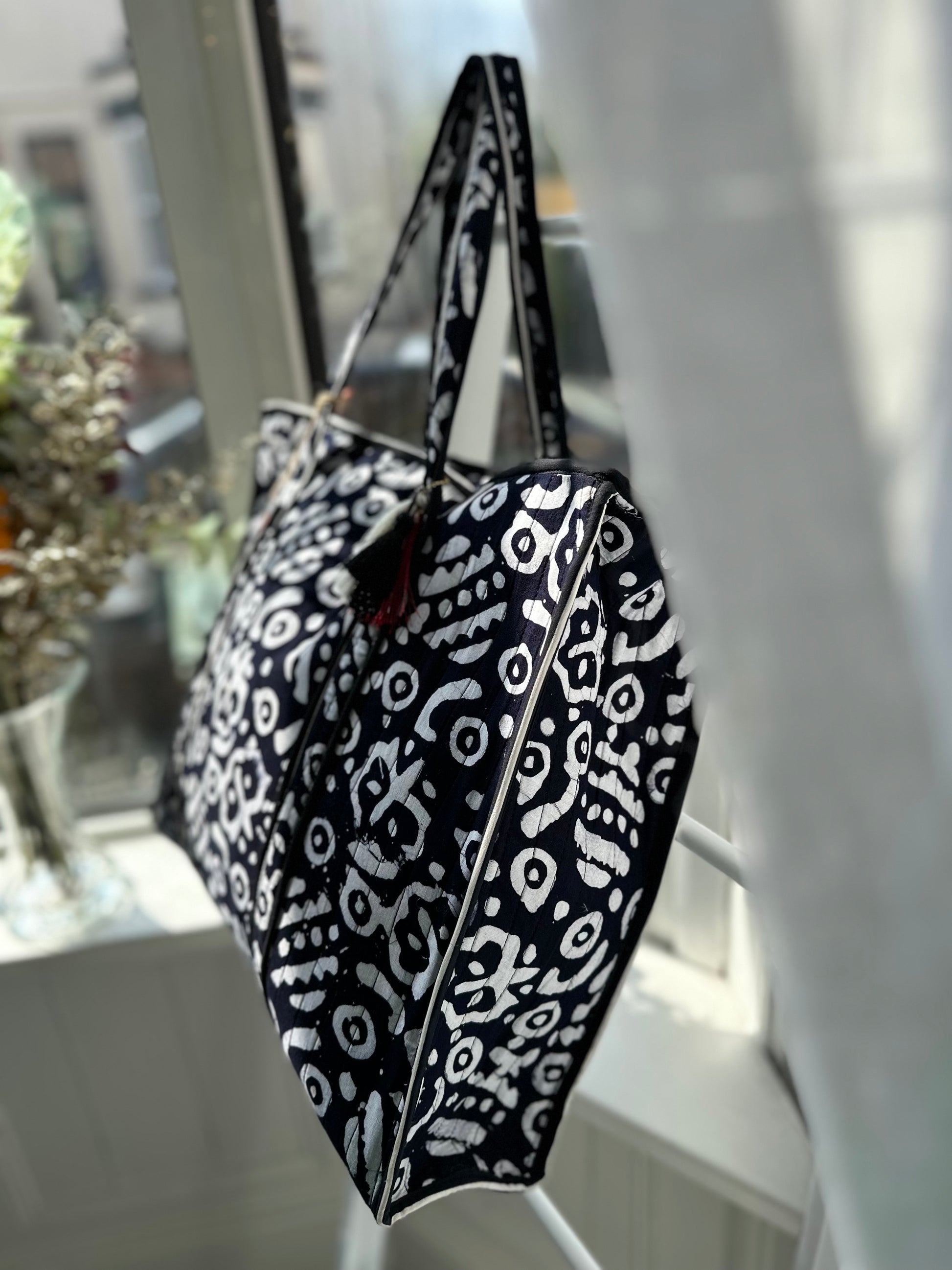 Elevate your everyday style with the Monochrome Maze Handmade Zipper Shoulder Bag, a bold statement piece designed for modern women who appreciate artistry, functionality, and sustainability. Handcrafted with care, this tote blends striking monochrome patterns with an eco-conscious approach, making it a must-have for fashion-forward individuals.