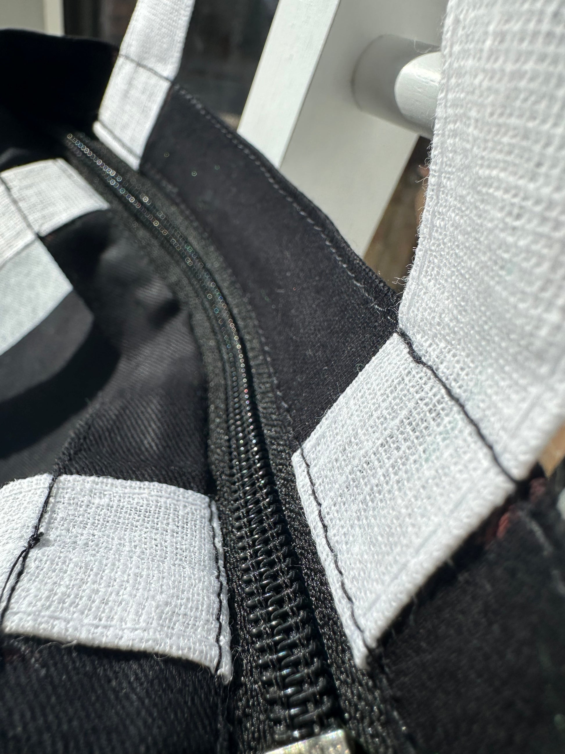 Type: Handheld mini tote with a unique tail-loop handle and Zip