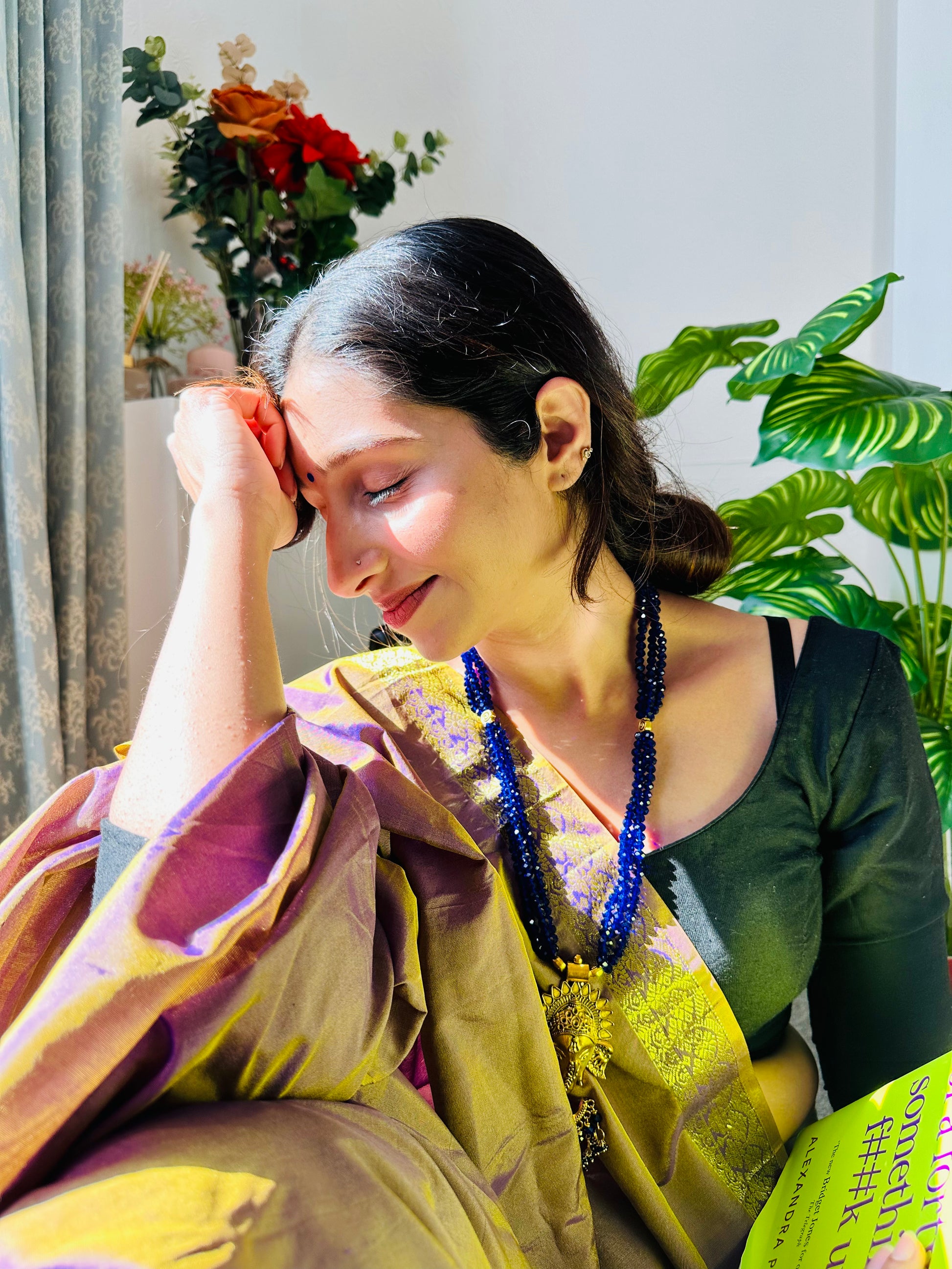 Handcrafted with care, this necklace combines traditional craftsmanship with modern sophistication. Each bead is meticulously selected to complement the deep blue of the layers, making it a versatile accessory that effortlessly transitions from day to night.
