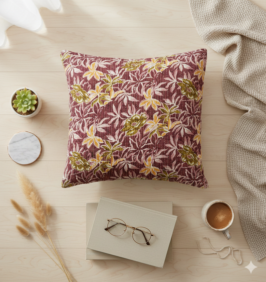 Mauve & Moss Handmade Cotton Quilted Cushion Cover