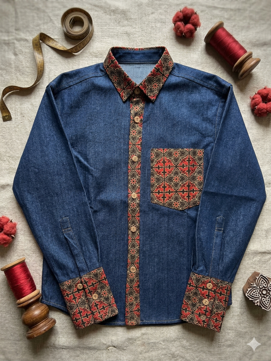 Folk Mosaic Denim Relaxed Handmade Shirt